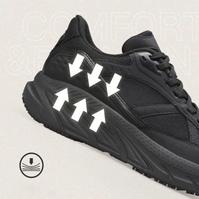 در بخش کفی، این مدل از کفی طبی با خاصیت ارتجاعی بالا بهره میبرد که فشارهای وارده از زمین را جذب کرده و از خستگی پا جلوگیری میکند. همچنین وجود لژهای ضربهگیر در قسمت جلو و عقب باعث کاهش فشار از روی مفاصل پا شده و راحتی بیشتری در راه رفتن فراهم میکند. انعطافپذیری عالی این کفش باعث شده که گامهای شما نرم، مطمئن و بدون خستگی باشد.